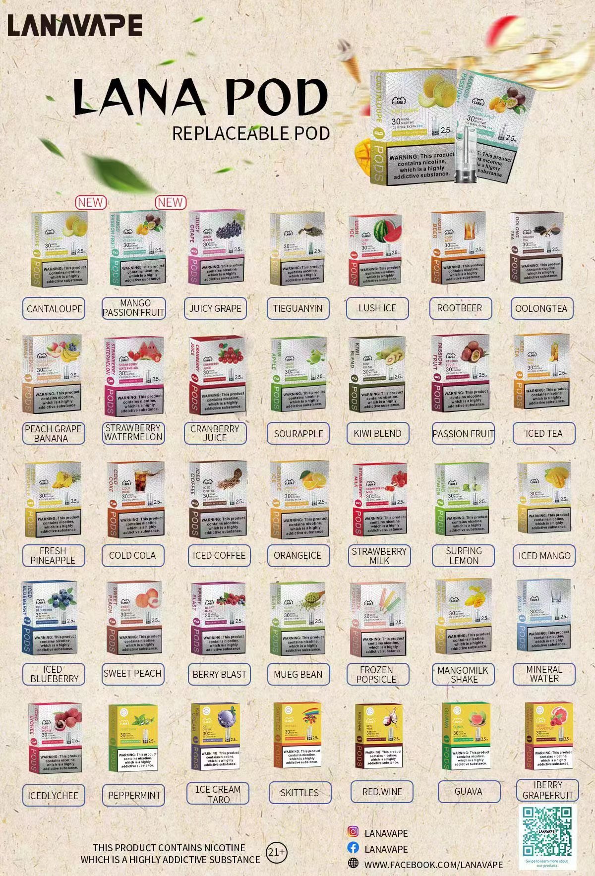 Lanavape煙彈提供30+多種口味選擇,從經典濃郁水果系列到香甜的甜點風味,滿足不同用戶的喜好!